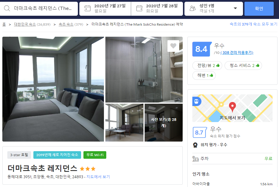 속초레지던스 호텔 // 속초의 숙박하기 좋고 저렴한 간이주방, 침실형 또는 온돌형의 더마크속초 레지던스 (The Mark SokCho Residence)