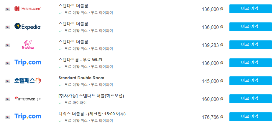 날짜에 따라서도 가격이 다르므로 여행날짜에 맞춰 가격을 검색하시는것이 좋습니다.