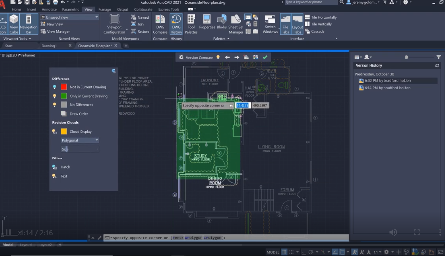 이전 버전과 현재 버전의 도면을 비교하고 작업의 진행 과정을 확인할 수 있습니다.