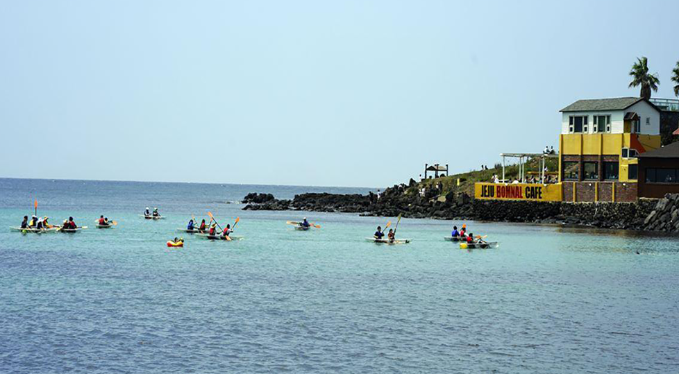 제주도의 아름다운 에메랄드 빛 투명한 바다를 몸으로 체험하며 즐기기 좋은 카약체험은 물에 젖지 않는 바다 카약도 준비되어 있으며, 넓은 바다를 노저어 다니며 제주도 구좌읍 하도해수욕장