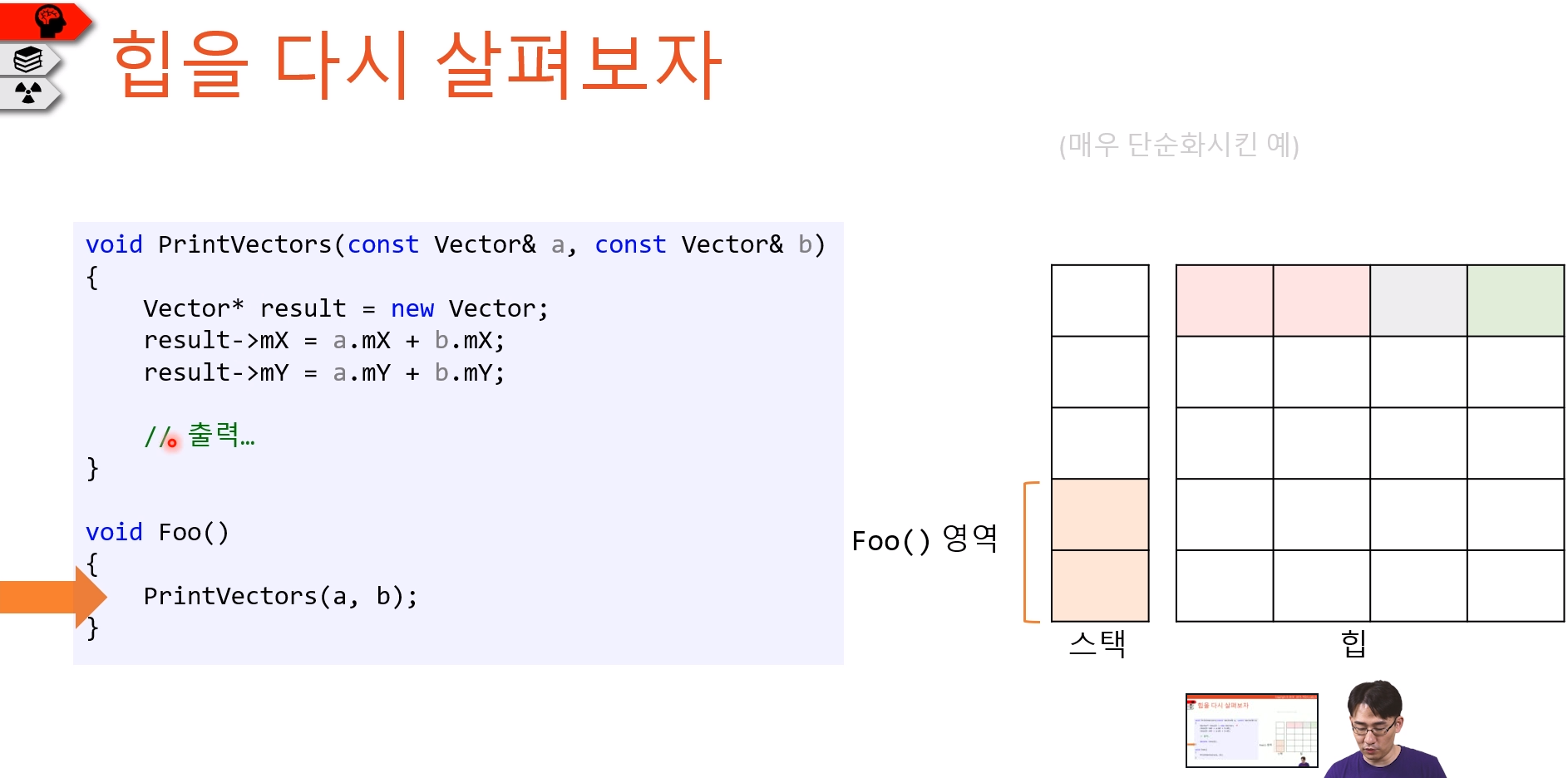 하지만 이 강좌를 듣고나서 정말 많은 난해함들이 해소되었습니다. 이젠 코드를 보면 머리 속에서 메모리 구조가 대략적으로 그려지기 시작했고 참조와 값의 차이를 이해하게 되었습니다. 정말로 감사합니다. 다른 강좌가 나오게 된다면 그 강좌도 꼭 듣고 싶습니다. 다시 한 번 감사드립니다.