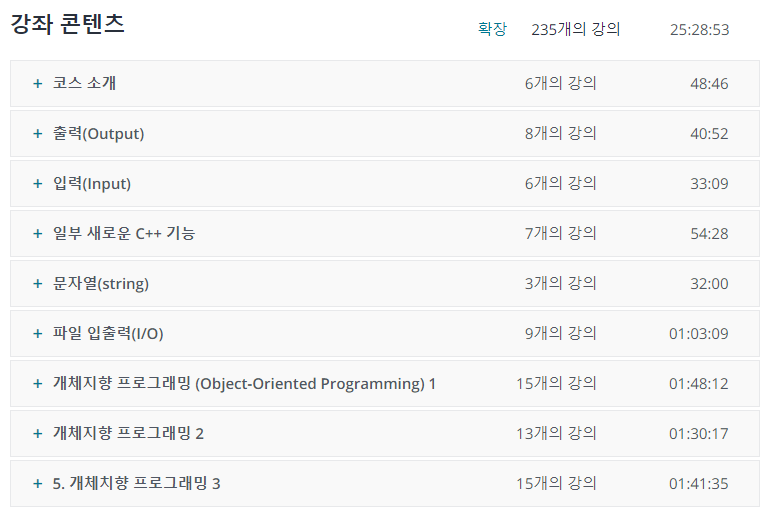 장점: C++은 매우 방대해서 혼자 공부하기 힘들수 있지만 이 강의는 군더더기가 없어서 집중하기 좋음. 단점: 중요 개념은 하다 만 느낌이 들고 분량이 적음. 언어 자체의 특성상 어려운 내용을 같이 다룰수밖에 없는데 그런 내용까지 가르치지는 않는것 같음.