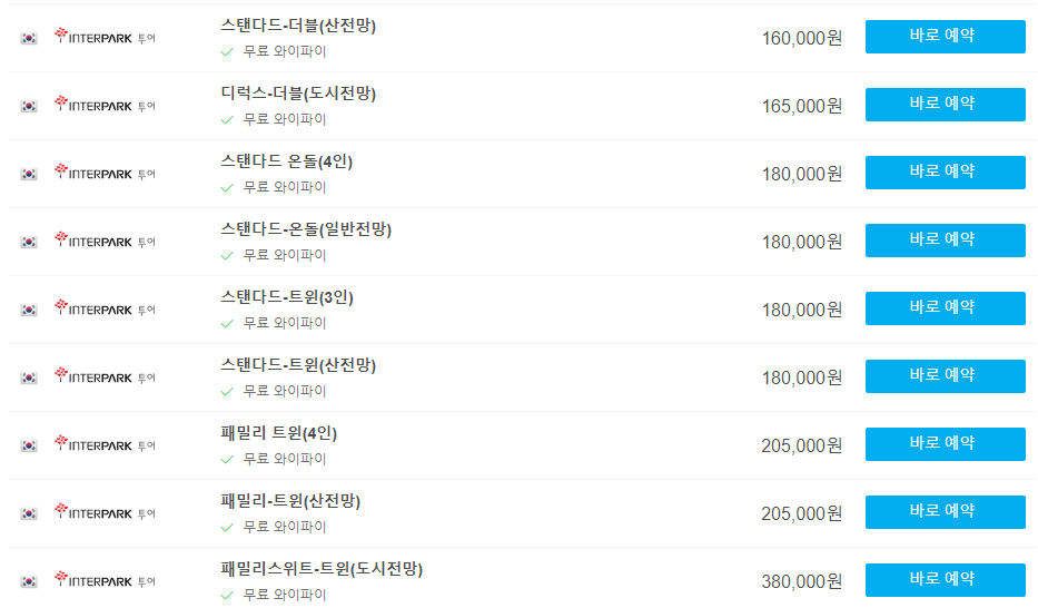 날짜에 따라서도 가격이 다르므로 여행날짜에 맞춰 가격을 검색하시는것이 좋습니다.