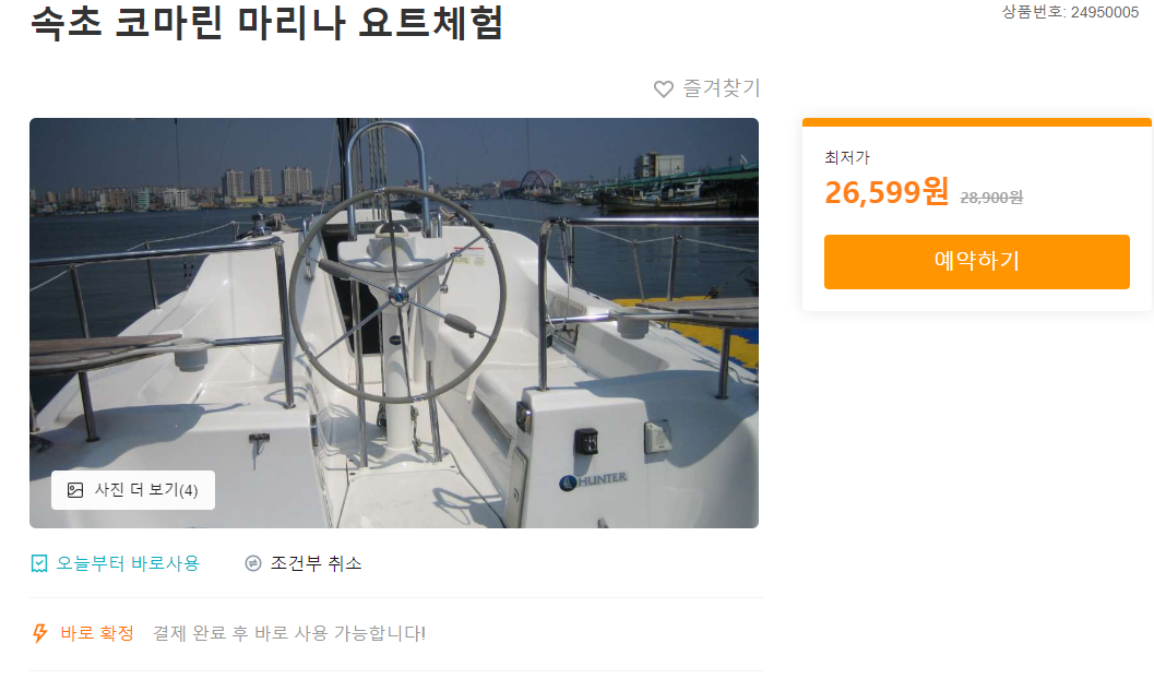 속초 코마린요트체험 예약은 트립닷컴온라인사이트에서 예약이 가능하여
