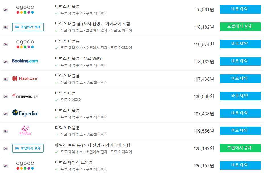 날짜에 따라서도 가격이 다르므로 여행날짜에 맞춰 가격을 검색하시는것이 좋습니다.