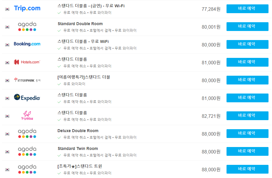날짜에 따라서도 가격이 다르므로 여행날짜에 맞춰 가격을 검색하시는것이 좋습니다.