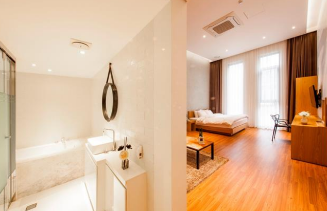 높은 천장과 2인이서 사용하기는 아까운 크기의 객실, 그리고 넓은 욕실등 가격대에 비해 객실이 진짜 넓었습니다. 스위트룸 같은느낌.