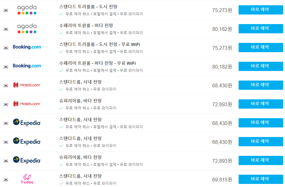 아고다비회원이거나 등급이 낮다면 최저가가 다를 수 있으며,