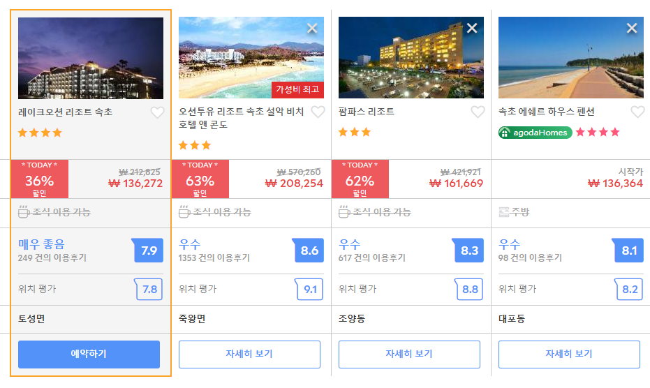 레이크오션 리조트 속초 (Lake Ocean Resort Sokcho)는 객실타입, 호텔옵션에 따라 현재 10만원대부터 다양하게 확인하실 수 있습니다. 호텔스 컴바인 사이트를 이용하시면 호텔예약사이트들의 가격 및 호텔옵션을 비교하여 쉽게 최저가를 확인하실 수 있습니다.