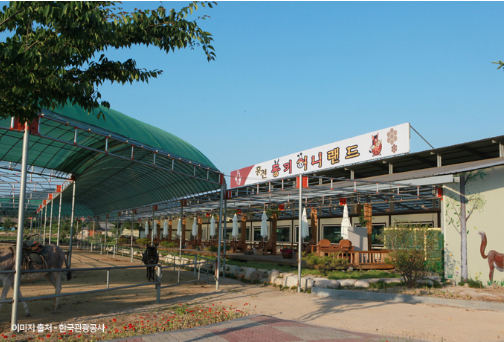 홍천의 명물인 당나귀와 벌꿀의 조합으로 만들어진 새로운 힐링체험 테마파크 '동키허니랜드'입니다. 당나귀를 타볼 수 있는 당나귀 체험공간과 꿀벌과 관련된 체험시설, 토종꿀 상품들을 판매 전시하고 있으며,
