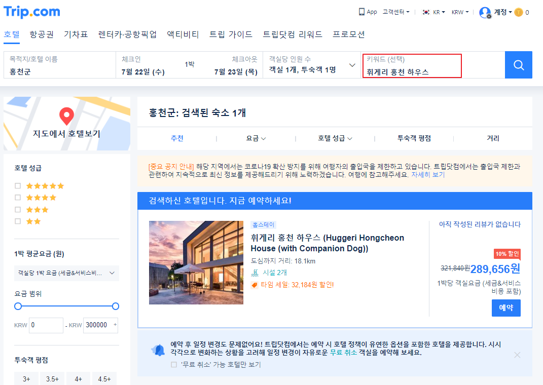 트립닷컴에서 휘게리 홍천하우스를 검색하시면