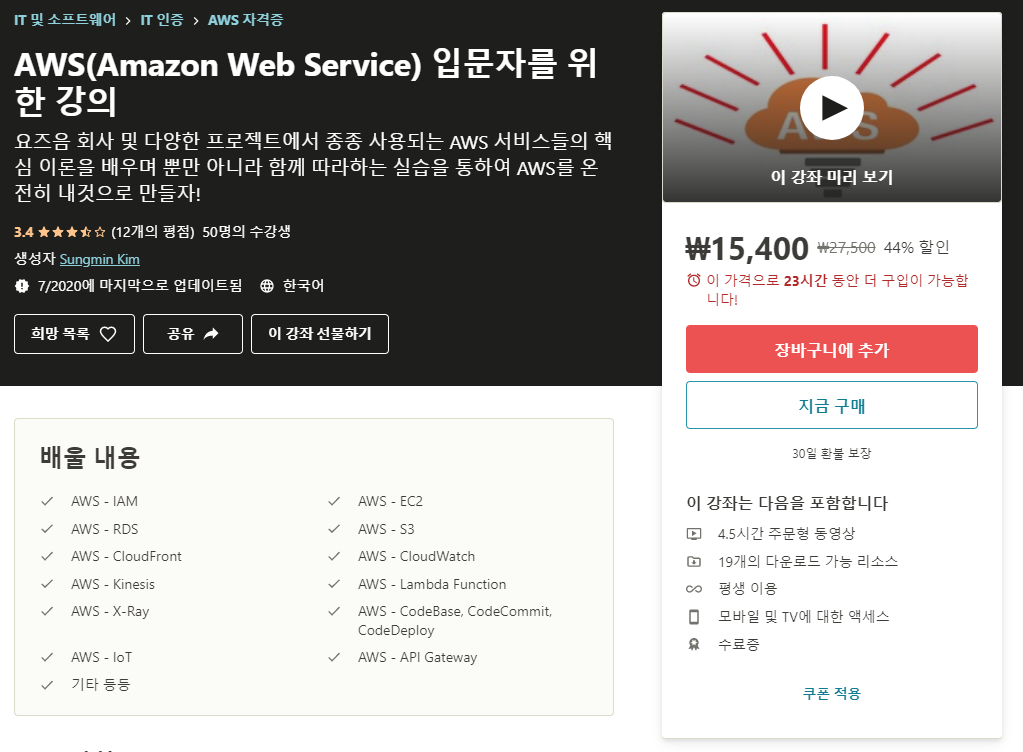 AWS(Amazon Web Service) 입문자를 위한 강의 자세히보기
