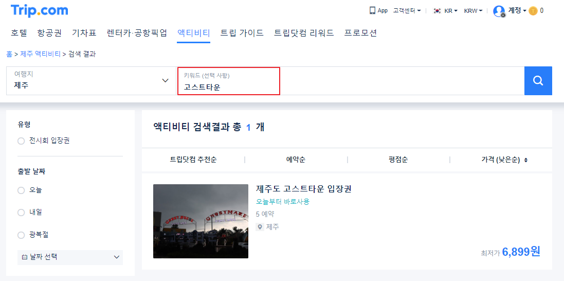 트립닷컴사이트에서 고스트타운을 검색하시면