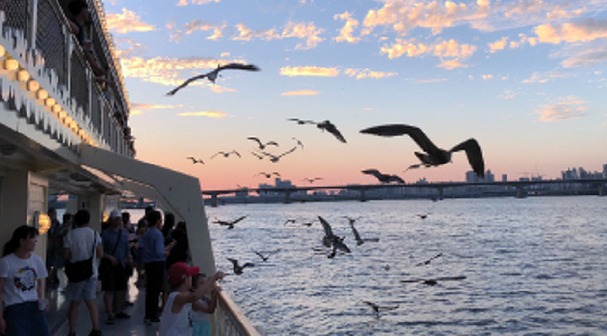 스토리크루즈의 하이라이트! 선내 매점에서 구매 후 귀여운 갈매기에게 먹이를 줄 수 있어요.