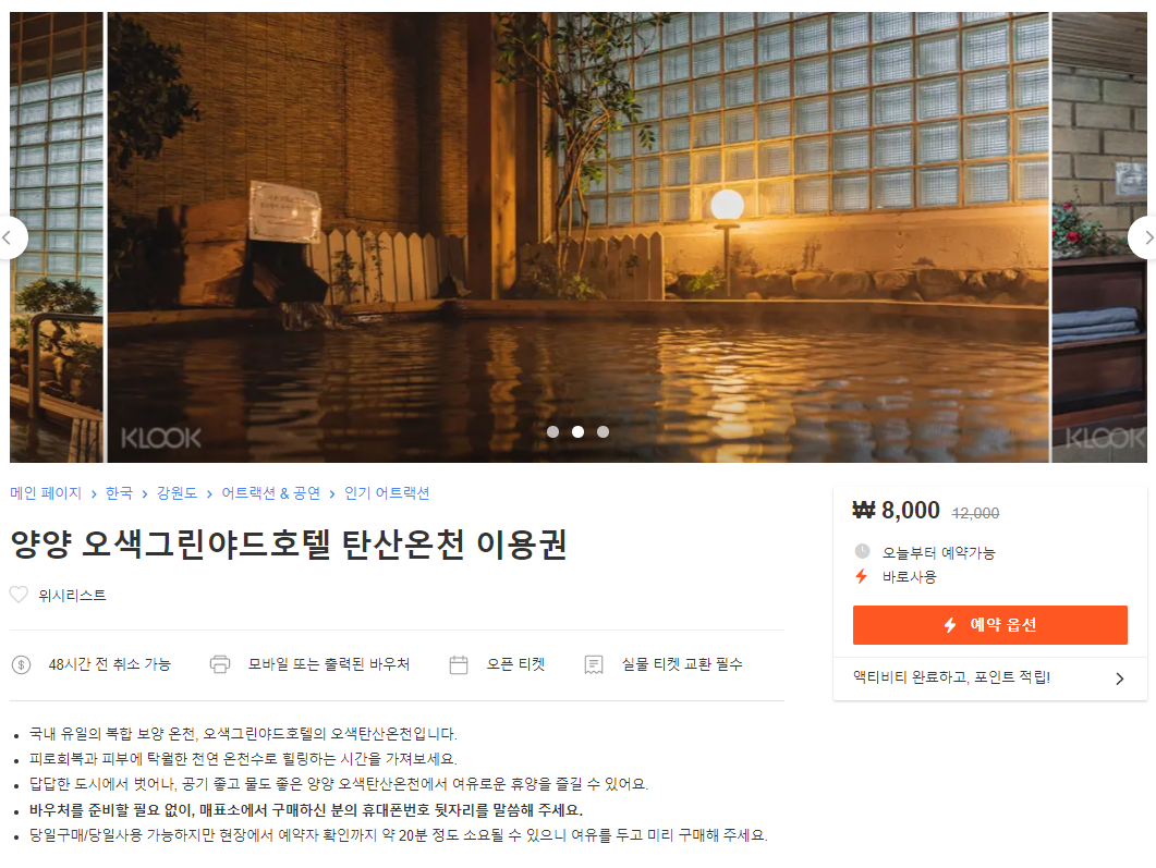 양양 오색그린야드호텔 탄산온천 이용권 할인 자세히 보기