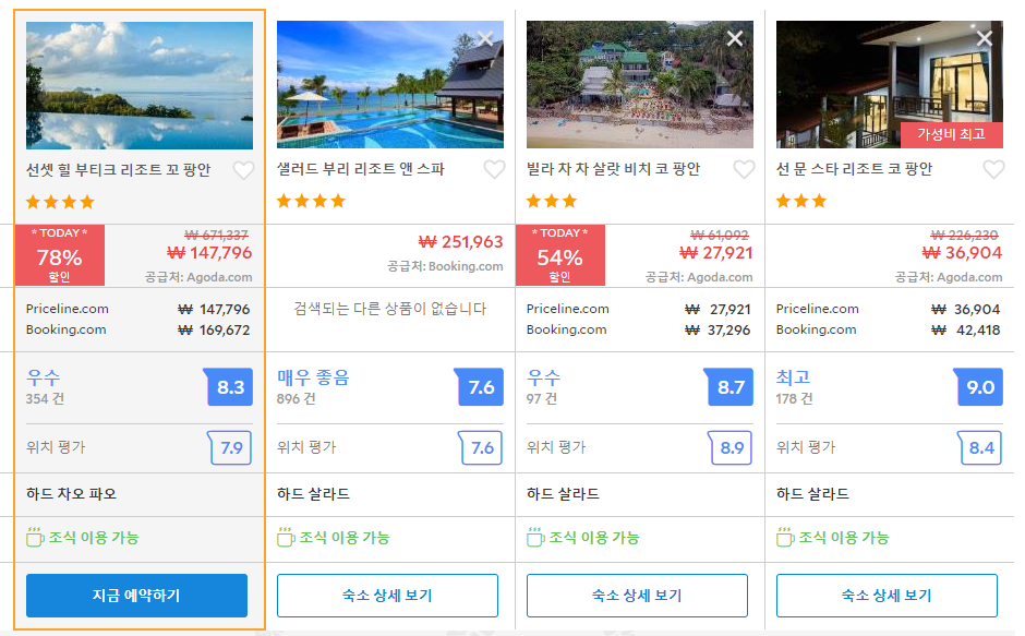 선셋 힐 부티크 리조트 코팡안 아고다 최저가 자세히 보기