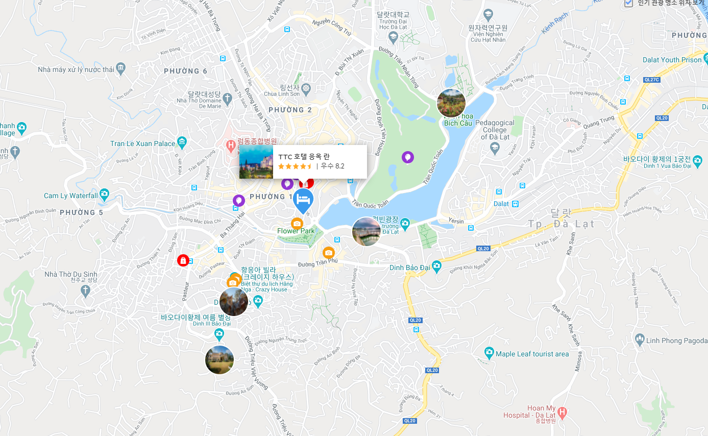 달랏 TTC 호텔 응옥 란 (TTC Hotel Ngoc Lan) 근처에 투어 부킹사무소? 같은 곳이 있어 달랏을 관광하기 편리합니다.