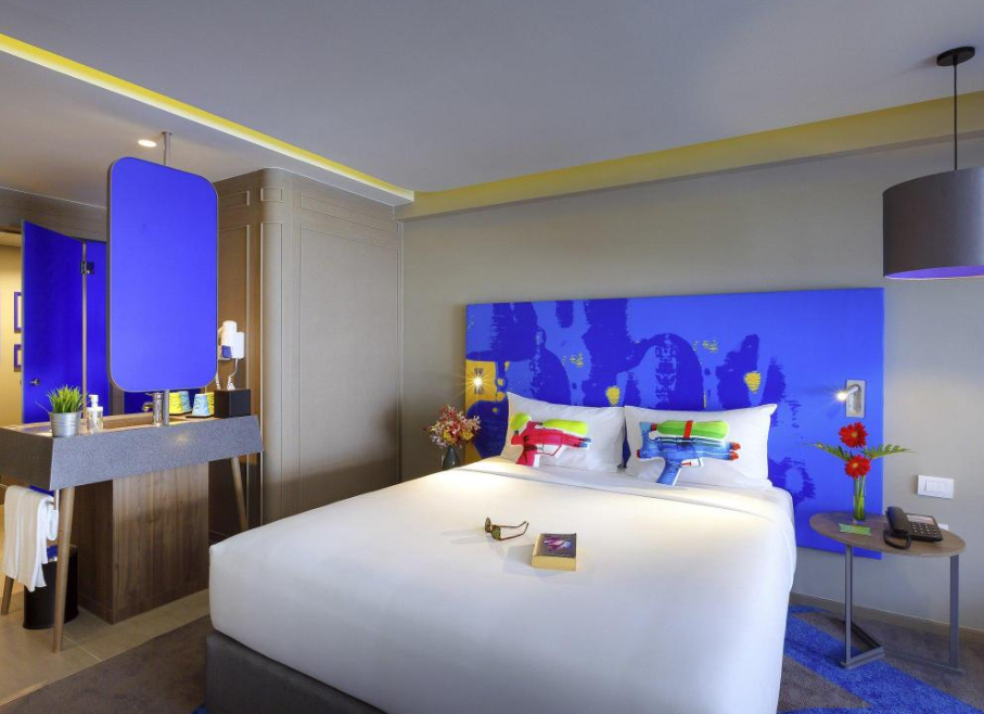 호텔도 그리 오래 되지 않았고, 매우 스타일리쉬하고, 컬러풀한 세련된 디자인을 자랑합니다.