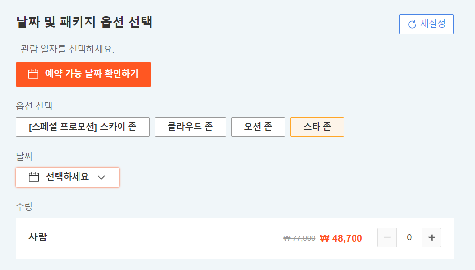 열광하는 칸쇼입니다. 스카이 존, 오션 존, 클라우드 존, 스타 존 중 좌석을 선택하실 수 있으며,