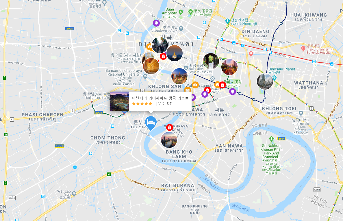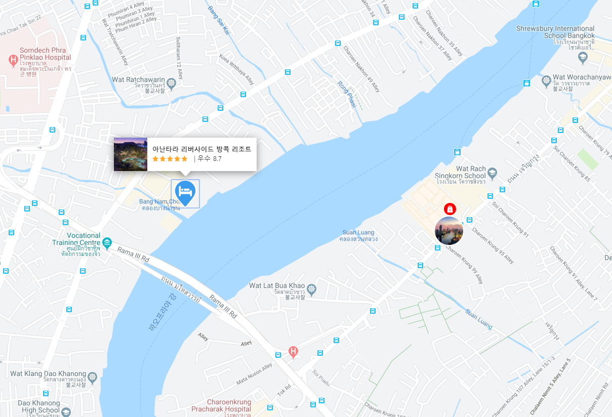 태국 방콕을 여행하며 도심의 북적거림이 아닌 휴양 분위기를 느끼길 원하신다면 추천드리는