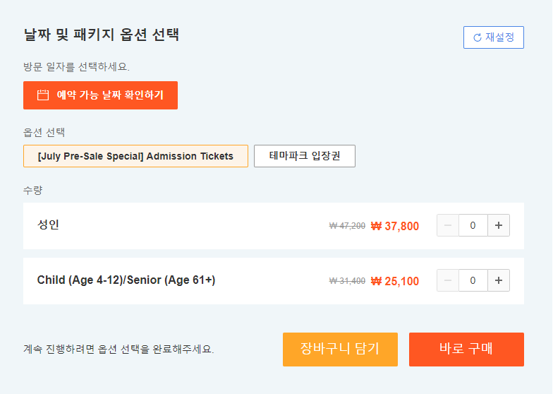 시니어 티켓: 만 61세 이상 (외국 국적 이용객만 해당)