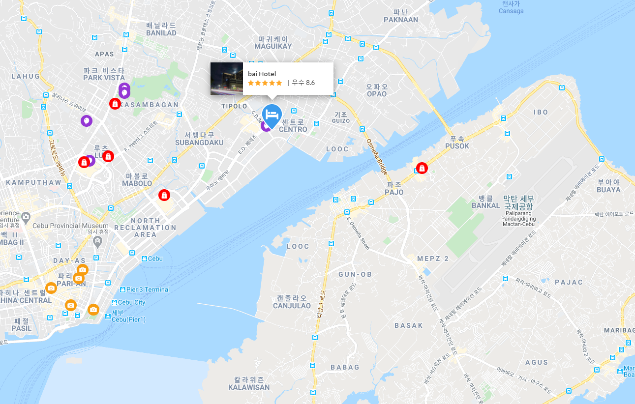 세부 바이 호텔 (Bai Hotel)의 최저 가격대는 아고다에서 할인특가 가격으로 매일매일 변동되며 평균8만원대부터 다양하게 형성됩니다. 아고다 최저가를 확인하시려면 아래 링크를 누르시면 원하는 날짜의 가격대를 자세히 보실 수 있습니다.