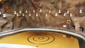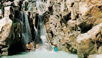 계곡의 폭포처럼 벽에서 떨어져 내리는 온천수가 전신을 마사지하는 탕입니다.