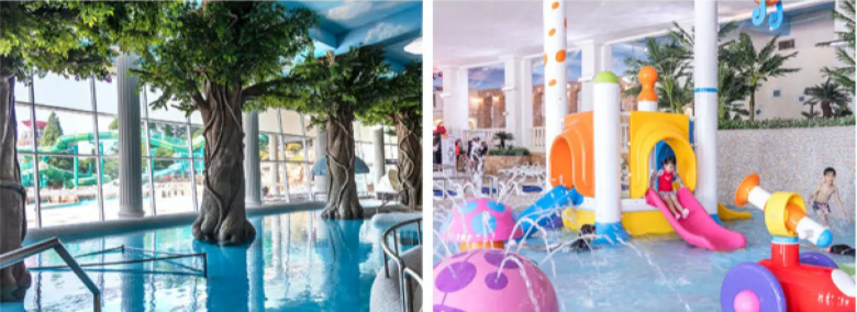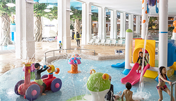 유아와 보호자가 함께 즐길 수 있는 실내 놀이풀로, 온천수를 사용해 여린 피부를