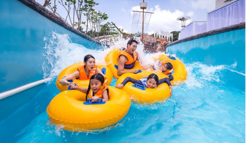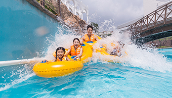 워터파크 야외 상층에 자리한 토렌트리버존은 계곡에서 래프팅을 하는 듯