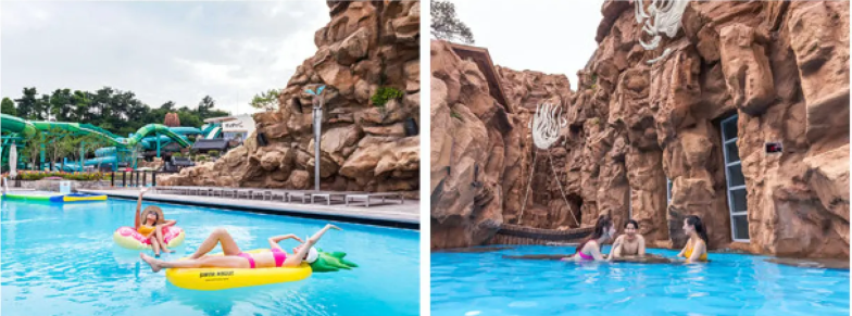 한국식 테마로 꾸며진 케이브존은 마치 동굴 속에서 온천을 즐기는 듯 아늑한 기분을 느낄 수 있습니다.