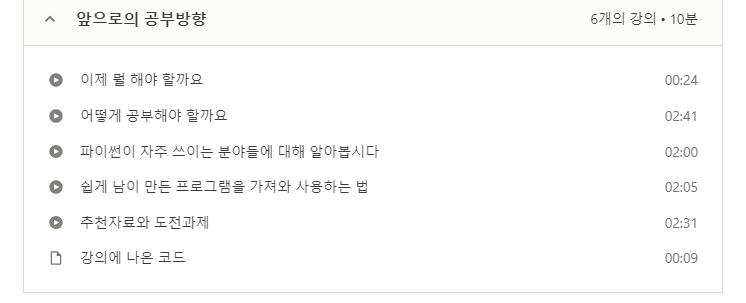 파이썬의 전체적인 내용보다는 파이썬을 '입문' 할 수 있도록 하는 내용들