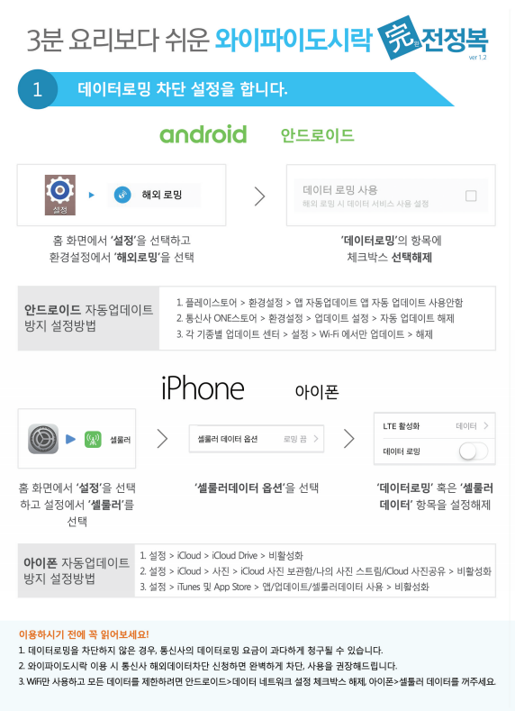 통신사 데이터 차단부터 와이파이도시락 설정 방법