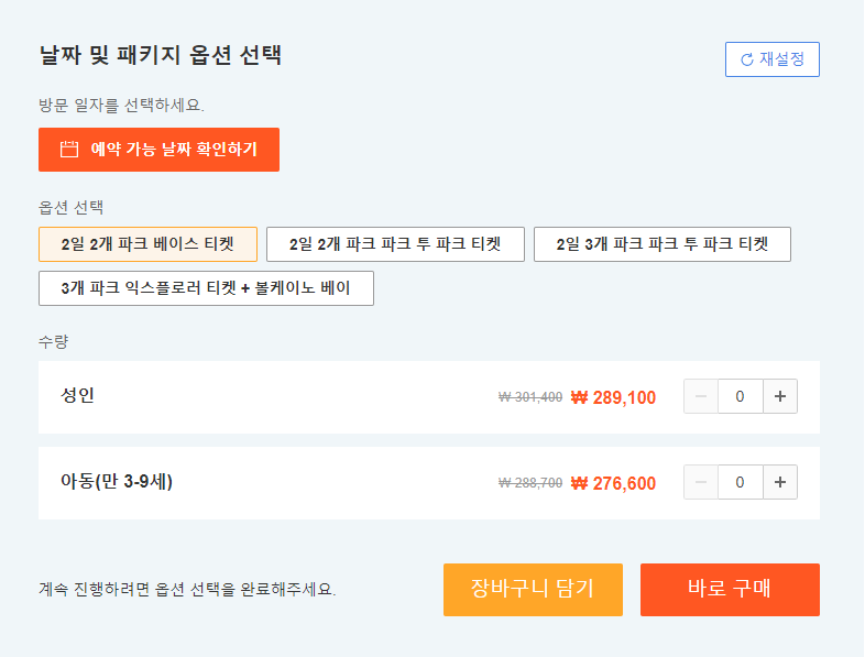 테마파크 등 3곳의 테마파크를 방문할 수 있는 다양한 패키지 중 원하는 패키지를 선택하시고,
