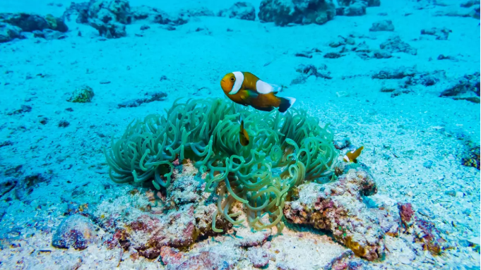오전 10시에 탄섬의 아름다운 해양 동물을 가장 가까이에서 볼 수 있는 스노클링을 즐깁니다.