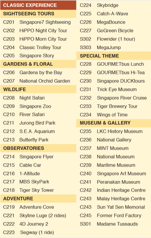 싱가포르 올데이패스는 싱가포르 여행에서 꼭 둘러 봐야 하는 45가지 액티비티가 포함되어 있으며,