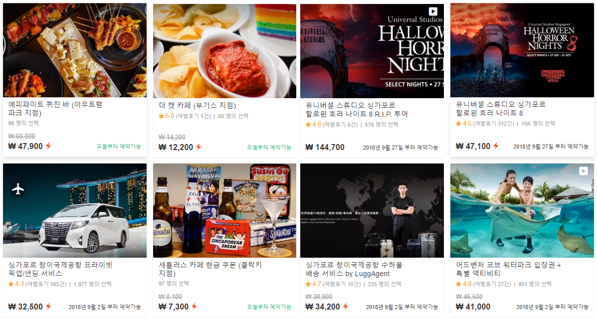 그리고 하나더, 클래식체험 45가지 액티비티에 없는 프리미엄 체험으로 4가지 중 1가지를 선택할 수 있는데요.. 싱가포르에서 가장 인기있는 방문지인 싱가포르 유니버셜스튜디오(universal studio), gourmetbuos 디너, 자이언트 스윙, 문라이트 어드벤처 중 1가지를 선택해서 즐길 수 있습니다.