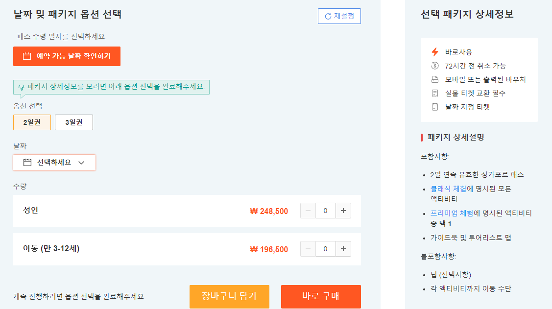 싱가포르 올데이 패스는 2일권 또는 3일권 중 선택하여 구매하실 수 있으며 싱가포르를 여행하며 정말 많은 액티비티를 경험하고 즐기면서 신나게 여행하시고 싶다면 여행예산을 확실히 절약하며 정신없이 즐길 수 있는 싱가포르 올데이 패스 꼭 추천합니다.
