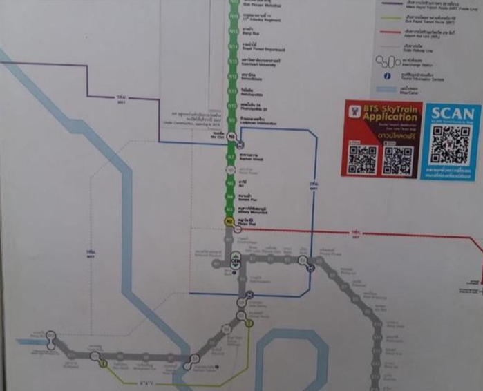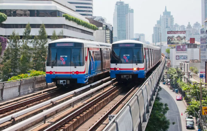 방콕 스카이트레인(BTS)은 모찟(Mo Chit) 역, 아속(Asok) 역, 살라댕(Sala Daeng) 역에서