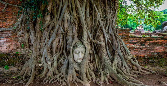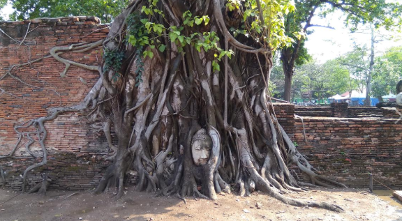 아유타야의 유명한 관광지로는 왓 마하탓의 나무 뿌리속 불상의 미소와