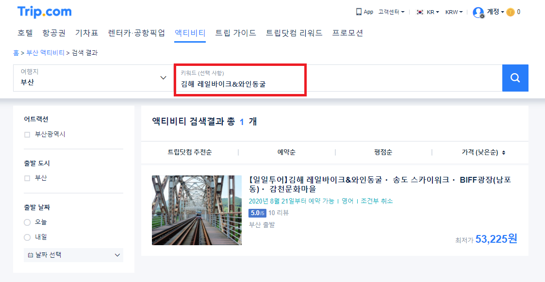 사이트에서 김해 레일바이크 와인동굴를 검색하시면