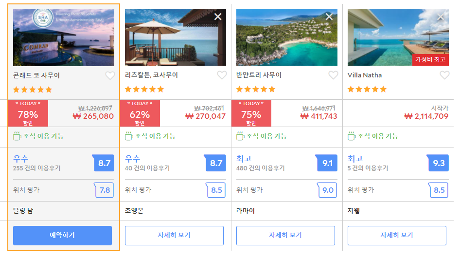 코사무이여행을 더욱 멋지고 추억에 남게 만들어주는 코사무이리조트로