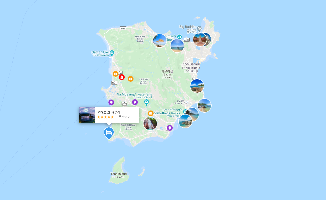 공항에서 택시로 40분 정도 걸리는 거리에 있고, 산 중턱에 있기 때문에 한번 들어가면 나와서 관광하기에는 다소 무리가 있습니다. 하지만 풀빌라 자체만으로 더할 나위 없는 최고의 숙소입니다. 전용 비치는 너무나 아름답고, 얕아서 멀리 걸어나가도 앉아있을 수 있습니다. 조용히 여유롭게 편안한 휴식을 원하신다면 적극 추천합니다. 레스토랑들은 다소 비싸긴 하지만 한번쯤은 경험해봐도 나쁘지 않습니다. 특히 이 곳은 한국인 직원들이 상주하고 계시는데, 너무나 친절하십니다. 특히 강민희 씨라는 직원분은 제가 코사무이 공항에서 면세품을 수화물에 싣는 것을 깜빡하고 들고 타다가 압류를 당하고 한국으로 돌아왔는데, 이후에 코사무이 공항에 몇날 몇일동안 연락하여 되찾아서 한국으로 보내주시기까지 하셨습니다. 물론 배송비와 관세가 물건값 만큼 들었지만요^^;;; 정말 너무나도 감사했습니다. 다시 코사무이를 가더라도 꼭 재방문할 예정입니다.