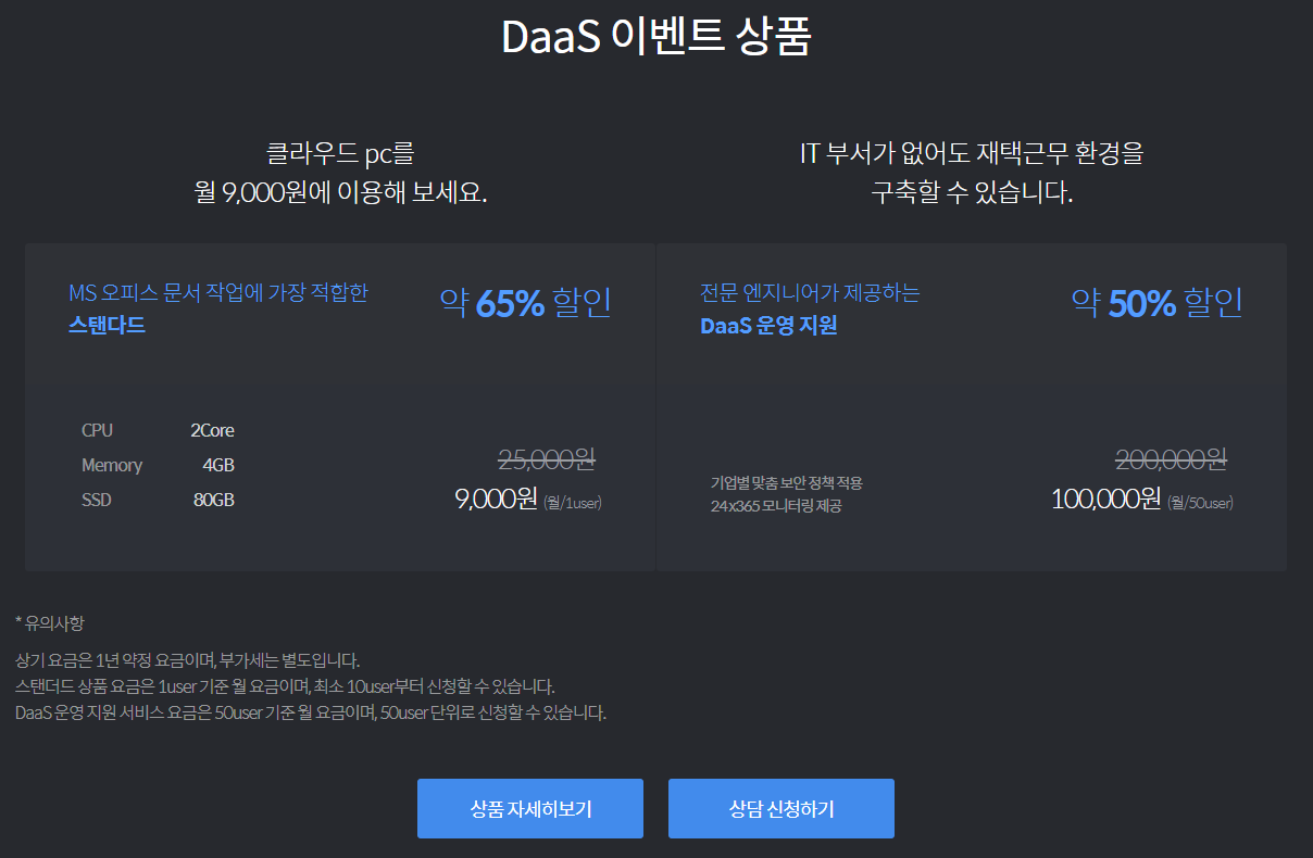 DaaS는 클라우드 컴퓨팅 기반의 가상데스크톱 서비스입니다.