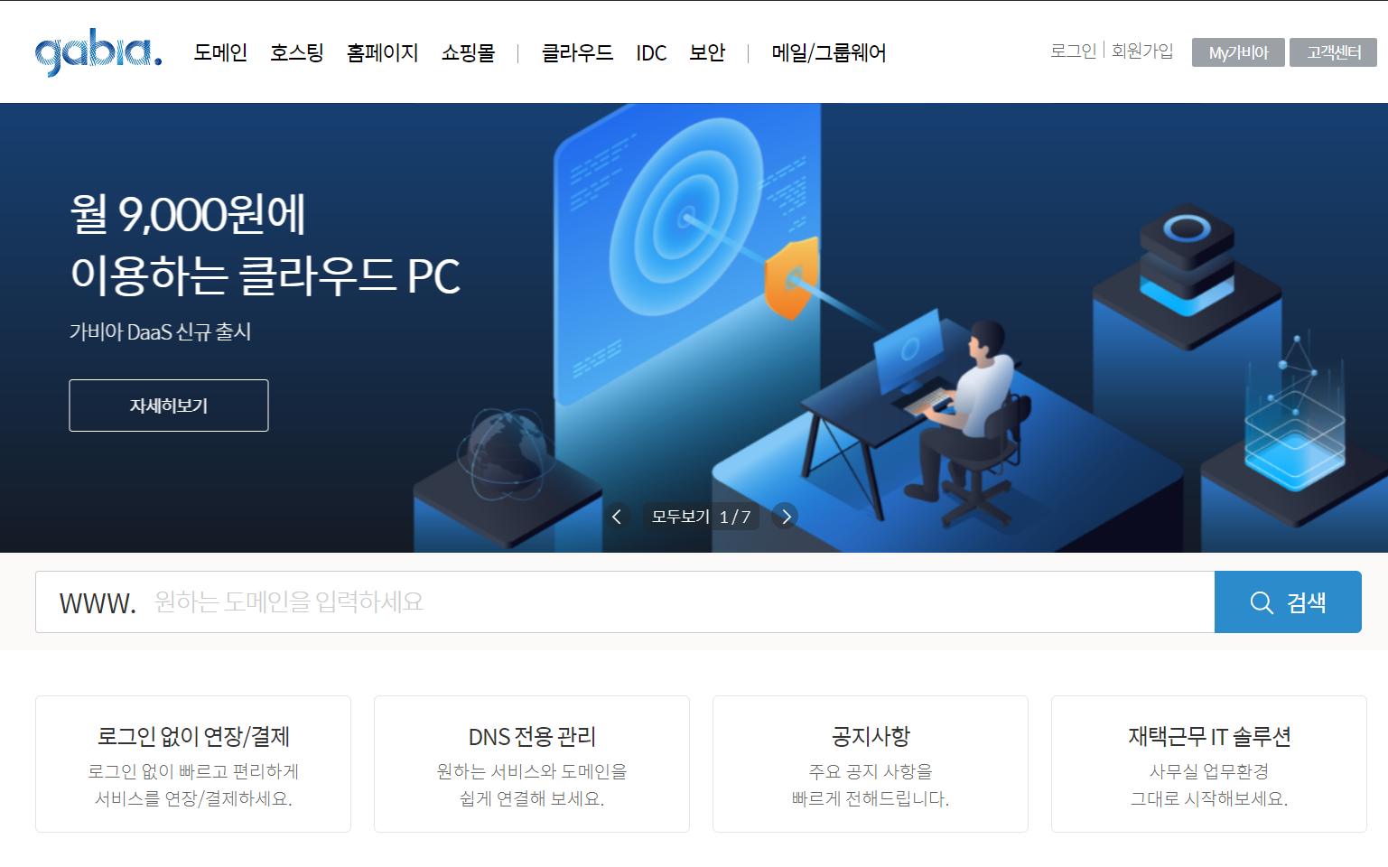 가비아 DaaS는 도메인, 호스팅, 홈페이지, 쇼핑몰, 클라우드를