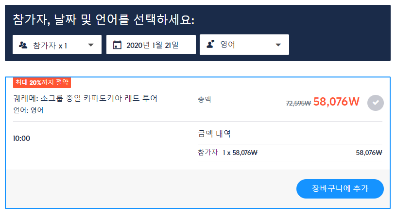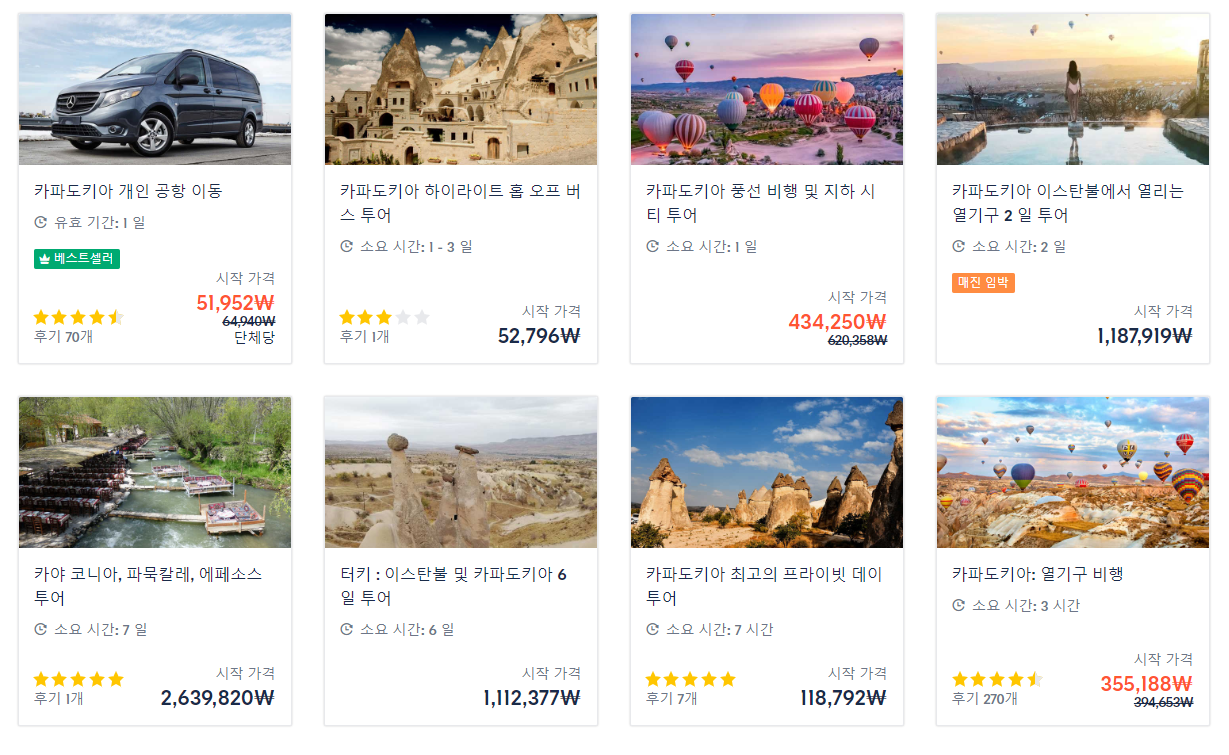 여행하실 수 있는 카파도키아 현지의 투어와 함께 저렴하게 여행을