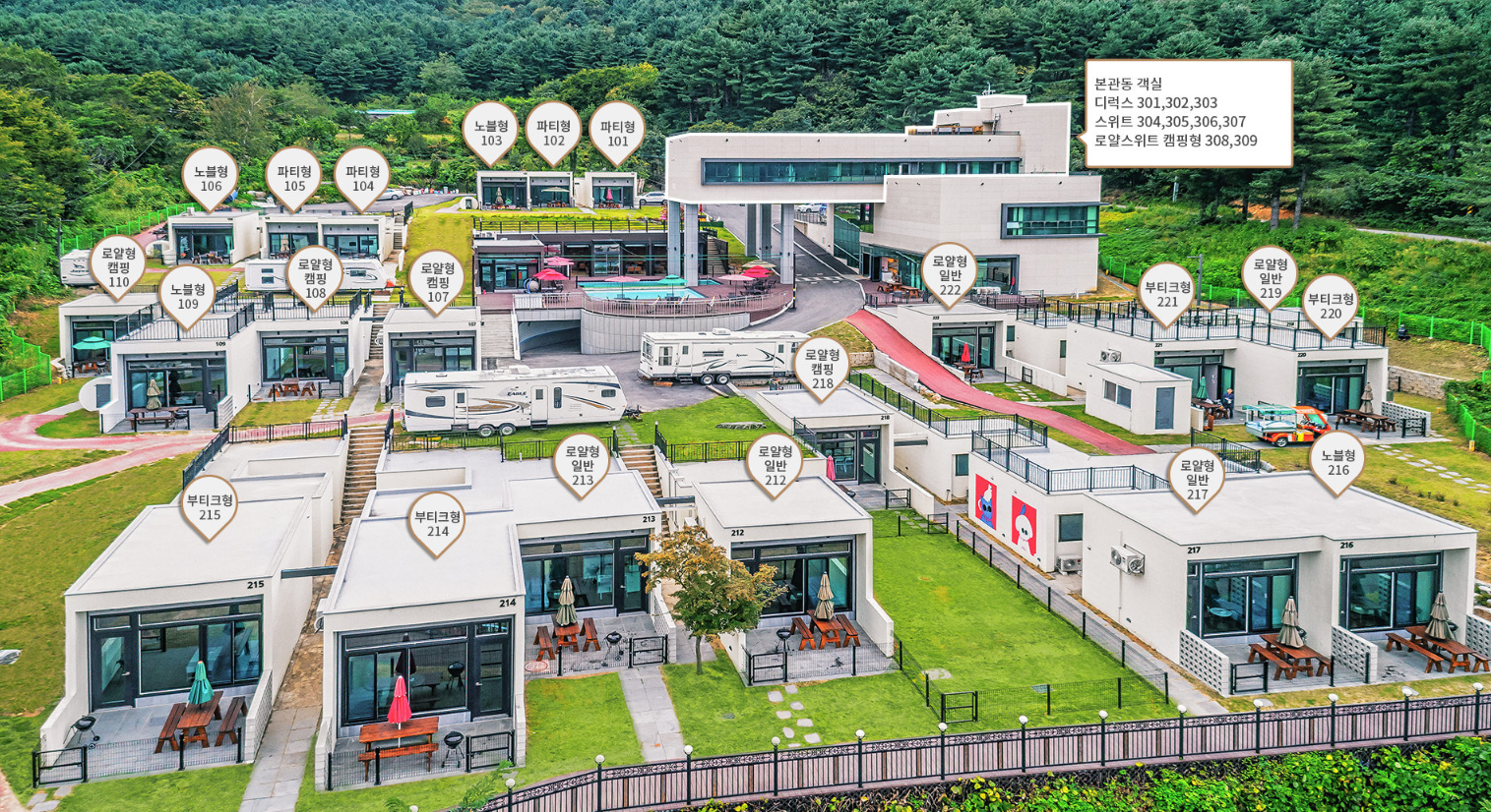 가평 오버더마운틴 펜션은 가족들과 펜핑을 즐길 수 있는 대단지 빌리지 호텔로