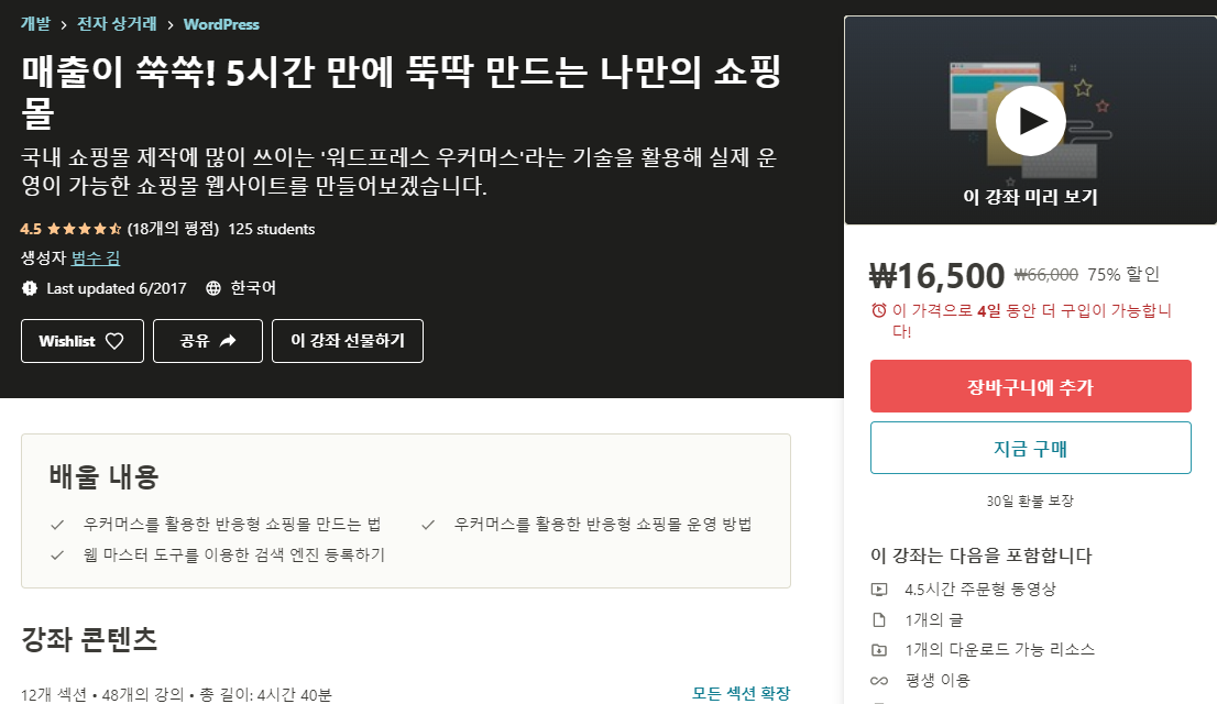 워드프레스로 쇼핑몰을 만들고 싶은 분에게 필요한 강의입니다.