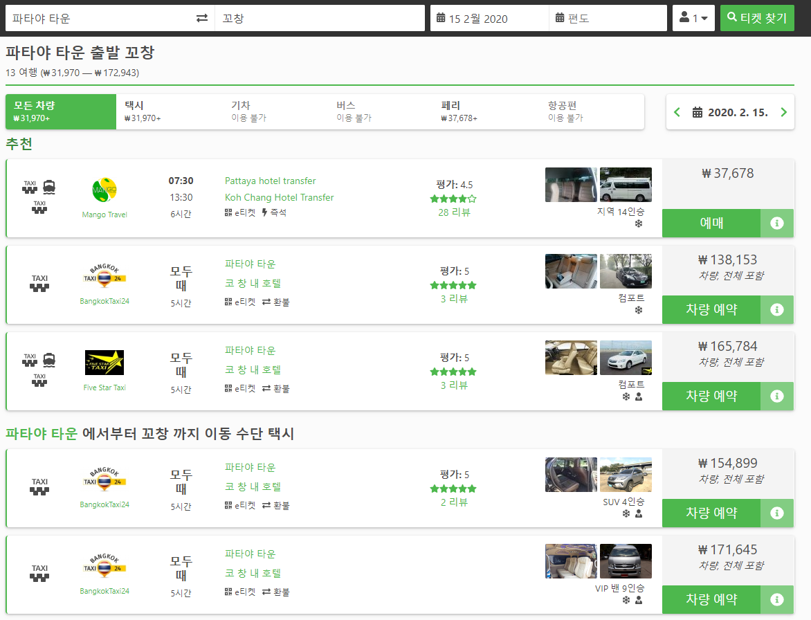 택시도 좋은 선택이 될 수 있습니다. 언제든 파타야 출발 꼬창행 택시를 예약할 수 있습니다.