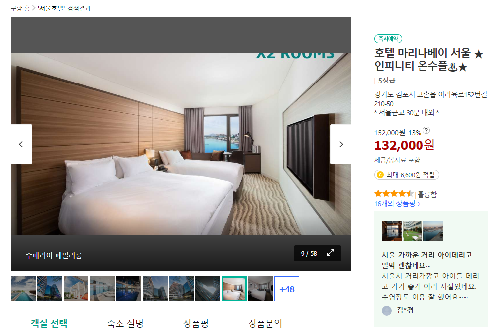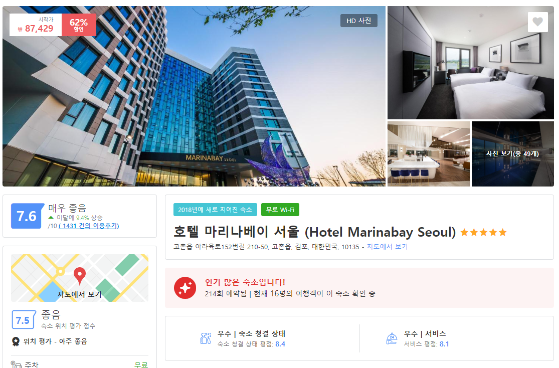 기억될 수 있는 인기 만점 호캉스로 좋은 호텔 마리나베이 서울 (Hotel Marinabay Seoul)입니다.