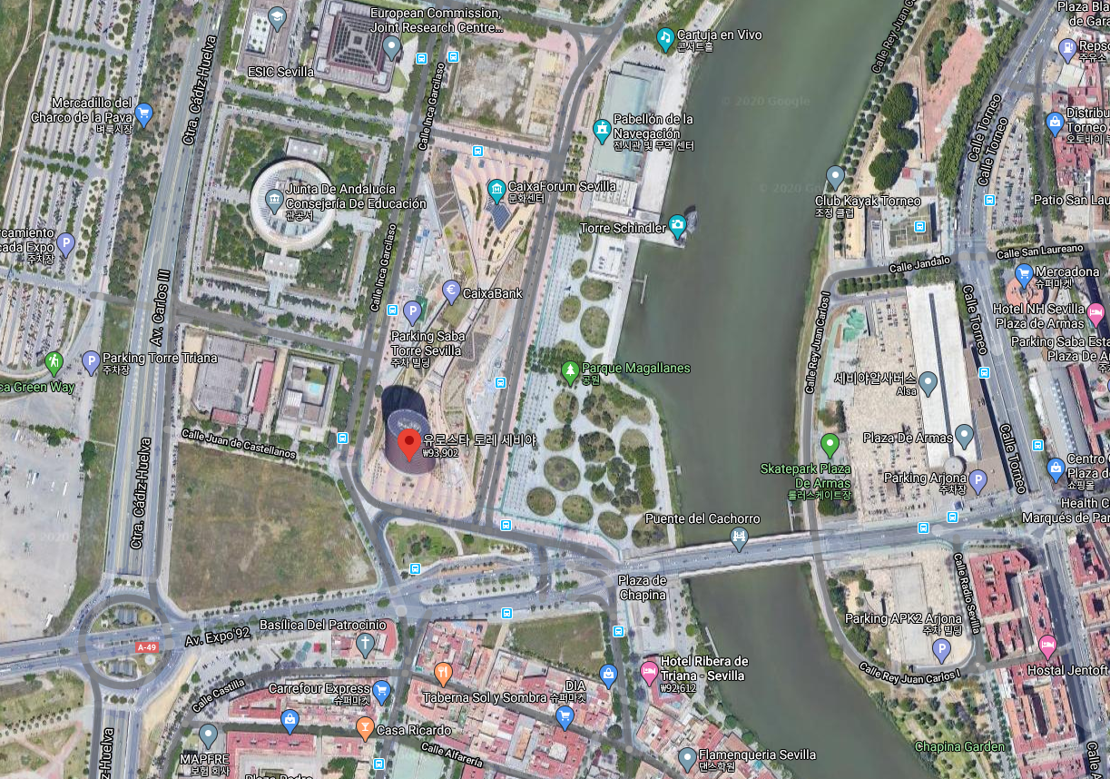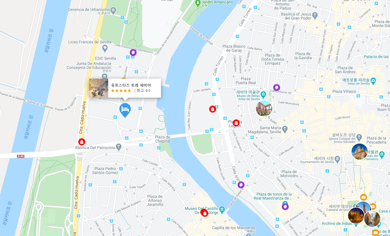 5성급 호텔 답게 서비스나 청결이 매우 훌륭하고 전망이 아주 좋습니다! 위치는 세비야 시내에서 살짝 떨어져있으나, 우리는 저녀먹고 소화시킬 겸 걸어도 부담 없는 거리였습니다. 시내에서 걸어서 20분 정도 거리에요.